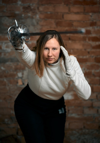 Anne, ursprünglich aus Deutschland, ist seit April 2023 Mitglied bei Sprezzatura Wien, mit klarem Fokus auf Rapier der italienischen Schule, insbesondere Fabris und Capo Ferro. 2018 begann sie an der London Longsword Academy mit Vulgar Destreza und deutschem Langschwert. Sie wirkt an der Organisation des Rapier Vienna mit, bildet sich international auf Workshops weiter und ist Co-Trainerin der Anfängergruppe bei Sprezzatura Wien.
